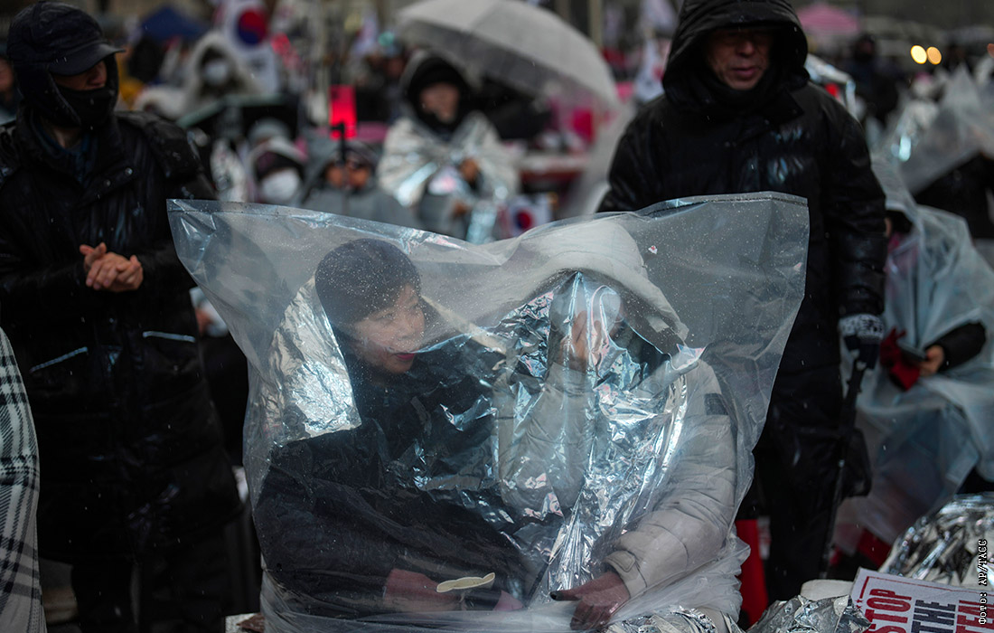 Демонстранты возле президентской резиденции в Сеуле, Южная Корея