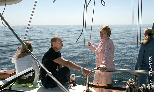2002 год. Владимир Путин с семьей на отдыхе во время морской прогулки.