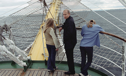 2002 год. Владимир Путин с семьей на отдыхе во время морской прогулки.