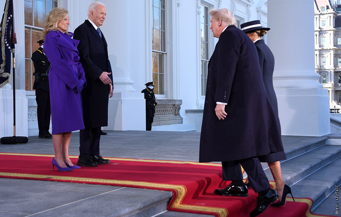 Уходящий с поста президента США Джо Байден, его супруга Джилл, избранный президент США Дональд Трамп и его супруга Мелания Трамп