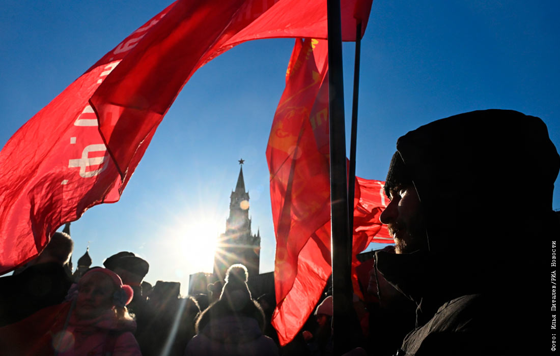 В Москве сторонники КПРФ возложили цветы к Мавзолею в память о Владимире Ленине