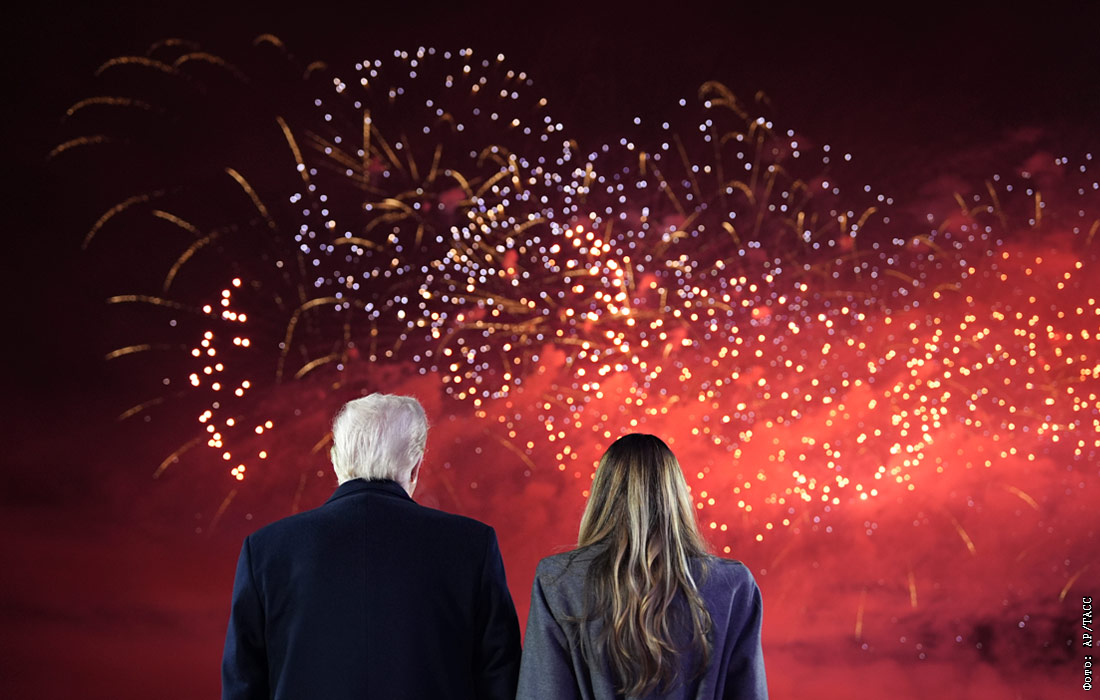 Избранный президент США Дональд Трамп и его супруга Мелания во время фейерверка в честь предстоящей инаугурации в гольф-клубе в Стерлинге