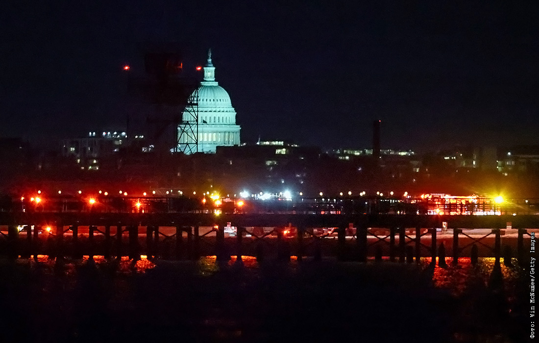 Столкновение пассажирского самолета Bombardier и военного вертолета Sikorsky в Вашингтоне. На фото: аварийные бригады возле аэропорта имени Рональда Рейгана.