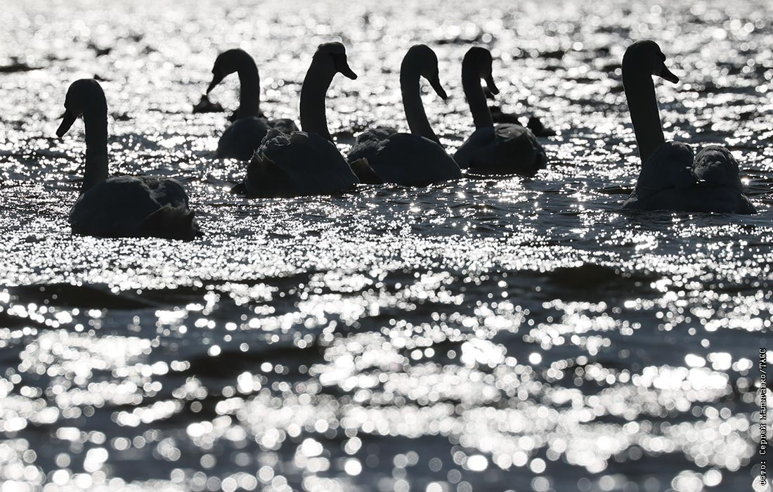 Лебеди на озере Сасык-Сиваш в Крыму