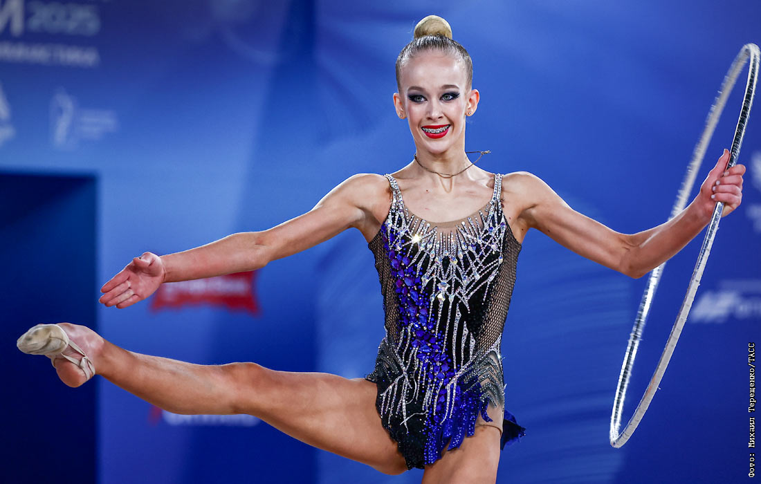 Выступление Миланы Федулкиной во время чемпионата России по художественной гимнастике в Москве