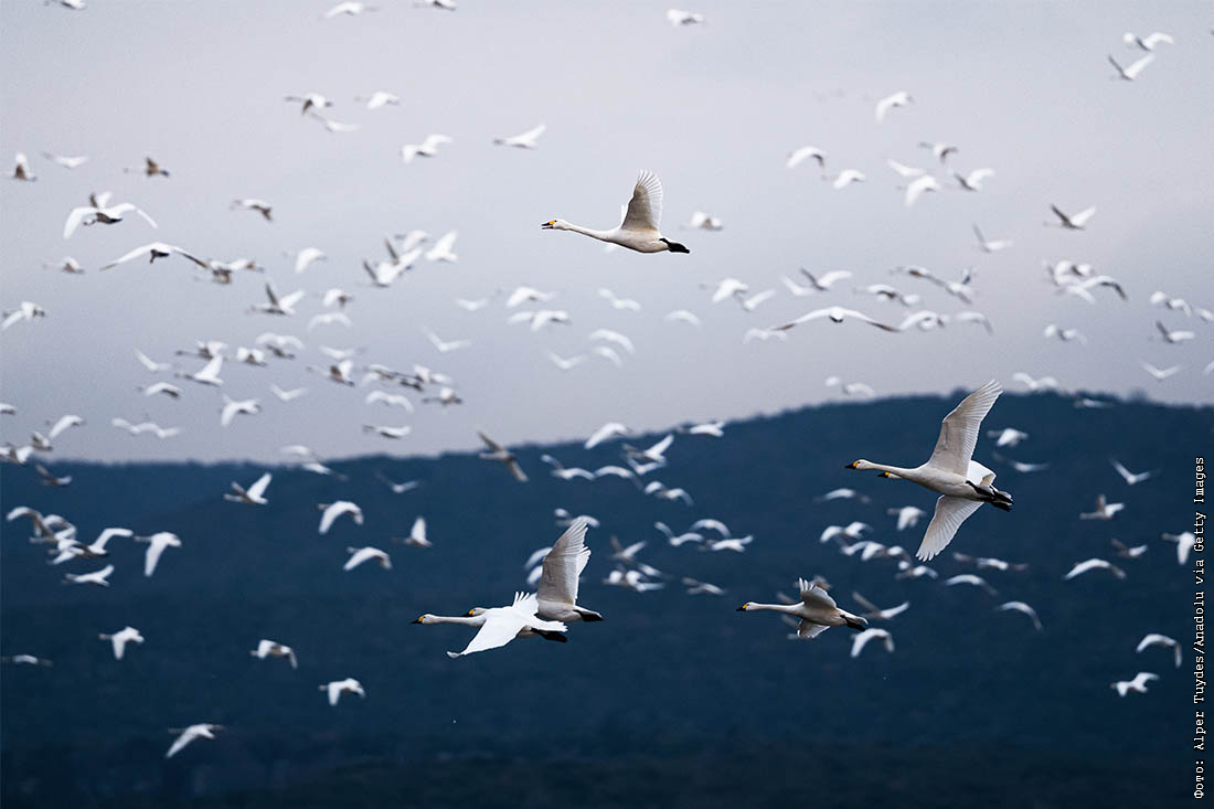 Тундровые лебеди прилетели на зимовку на озеро Гала в Турции