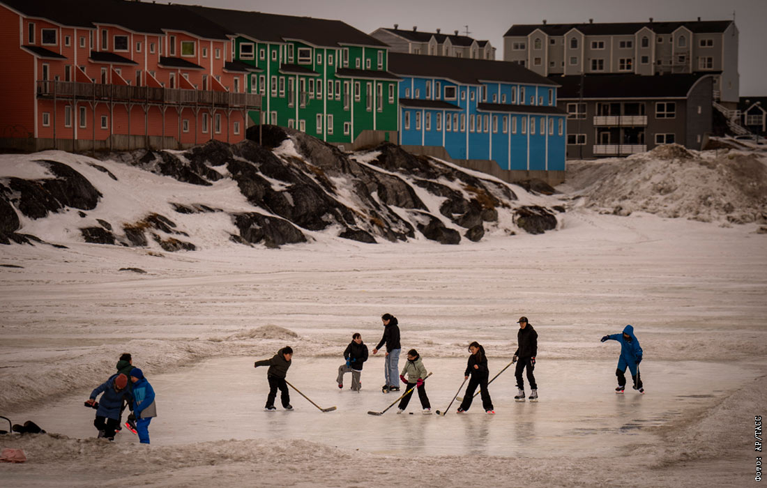 Дети играют на льду в Нууке, Гренландия
