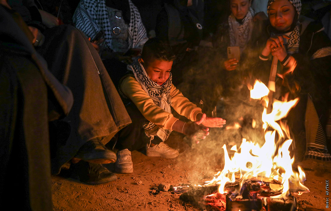 Израиль освободил более 600 палестинских заключенных в рамках сделки с ХАМАС. На фото: местные жители греются у костра, ожидая заключённых, освобожденных из израильских тюрем.
