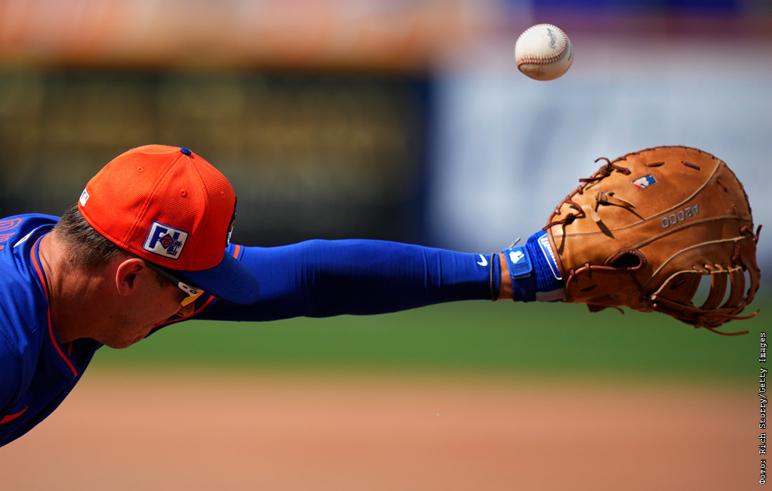 Игрок команды "Нью-Йорк Метс" Джаред Янг во время бейсбольного матча в Порт-Сент-Луси, США