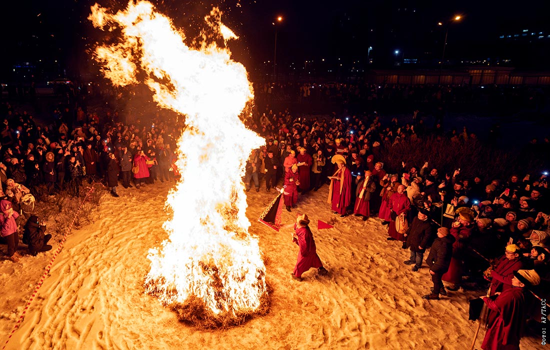 Ритуальный обряд "Дугжууба" на территории храма "Дацан Гунзэчойнэй" в Санкт-Петербурге
