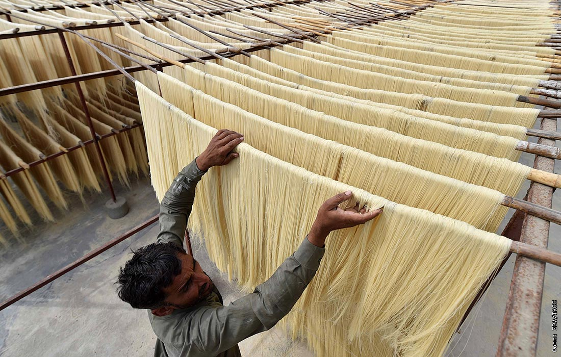 Сушка вермишели в Карачи в первый день священного для мусульман месяца Рамадан
