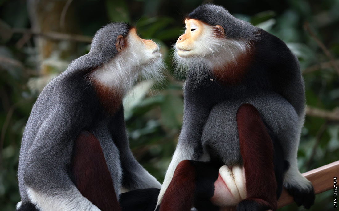 Дук-лангуры в парке дикой природы Rainforest Wild Asia в Сингапуре