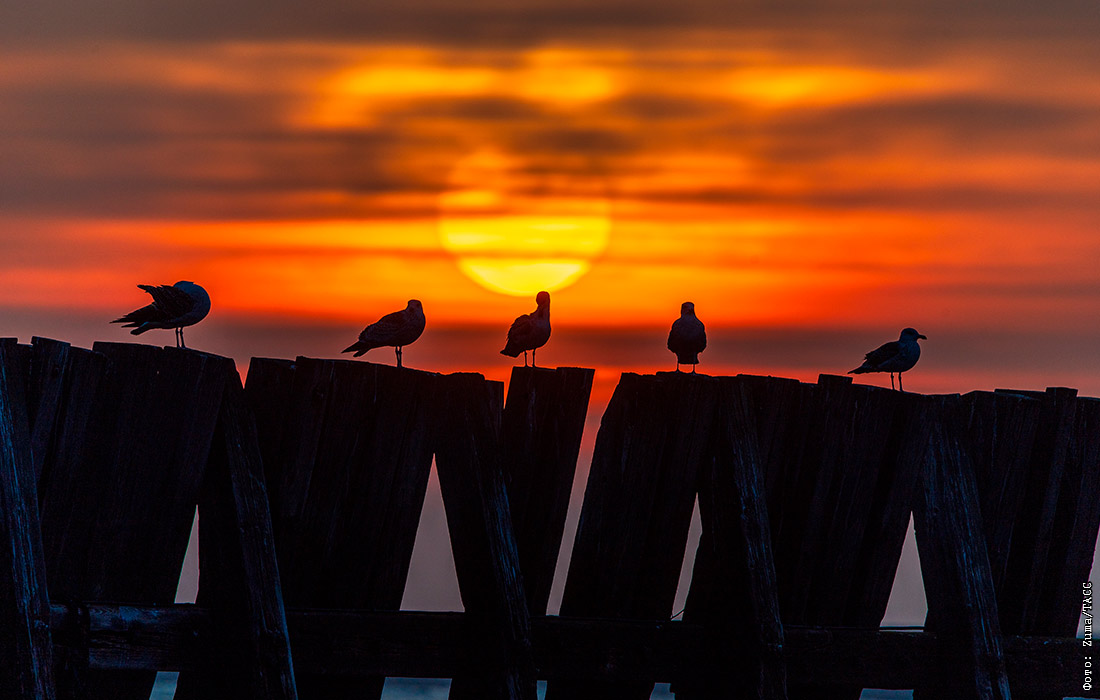 Восход солнца в устье реки Тайн на северо-востоке Англии