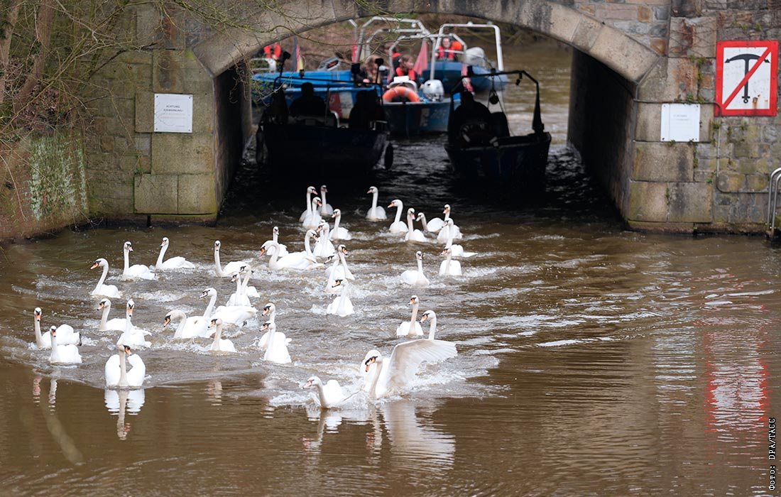 Белые лебеди вернулись на реку Альстер в Гамбурге после зимовки