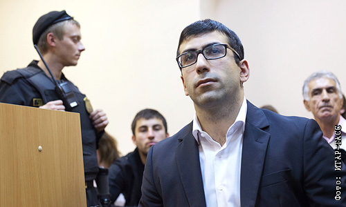 Мурад Агаларов, подозреваемый в стрельбе из травматического пистолета в центре столицы на праздновании свадьбы, во время рассмотрения дела в мировом суде Тверского района.