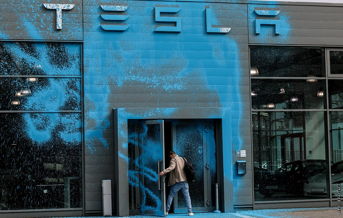 В Берлине облили краской автомобильный салон Tesla