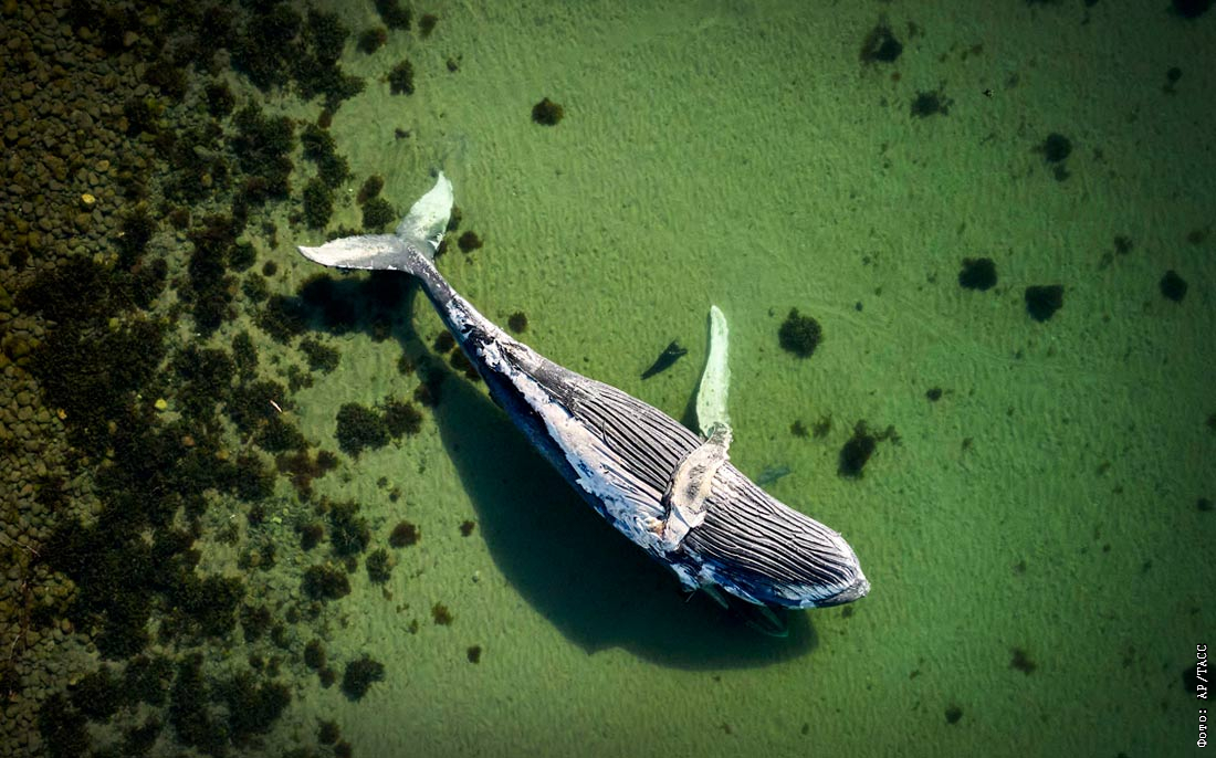 Горбатого кита выбросило на побережье датского города Фелле-Странд