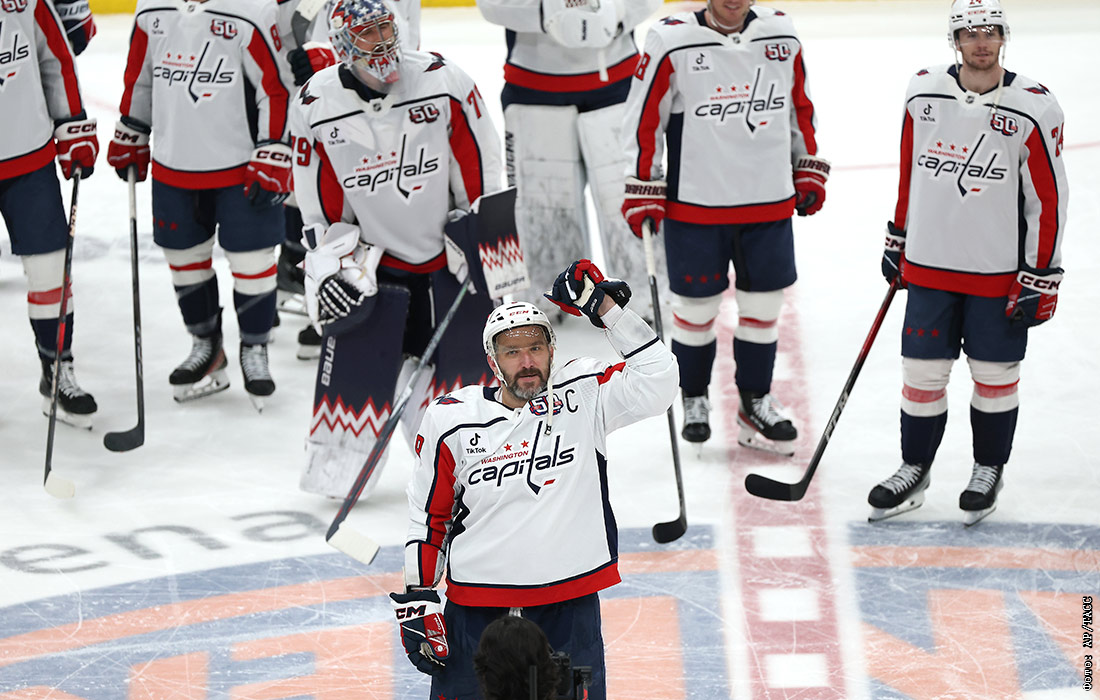 Нападающий "Вашингтона" Александр Овечкин после того, как забил рекордную 895-ю шайбу в матче чемпионата НХЛ против "Нью-Йорк Айлендерс"