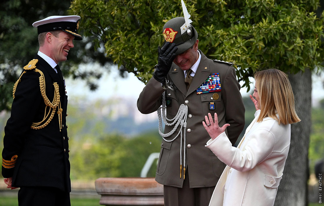 Премьер-министр Италии Джорджия Мелони перед началом встречи с королем Великобритании Карлом III на вилле в Риме