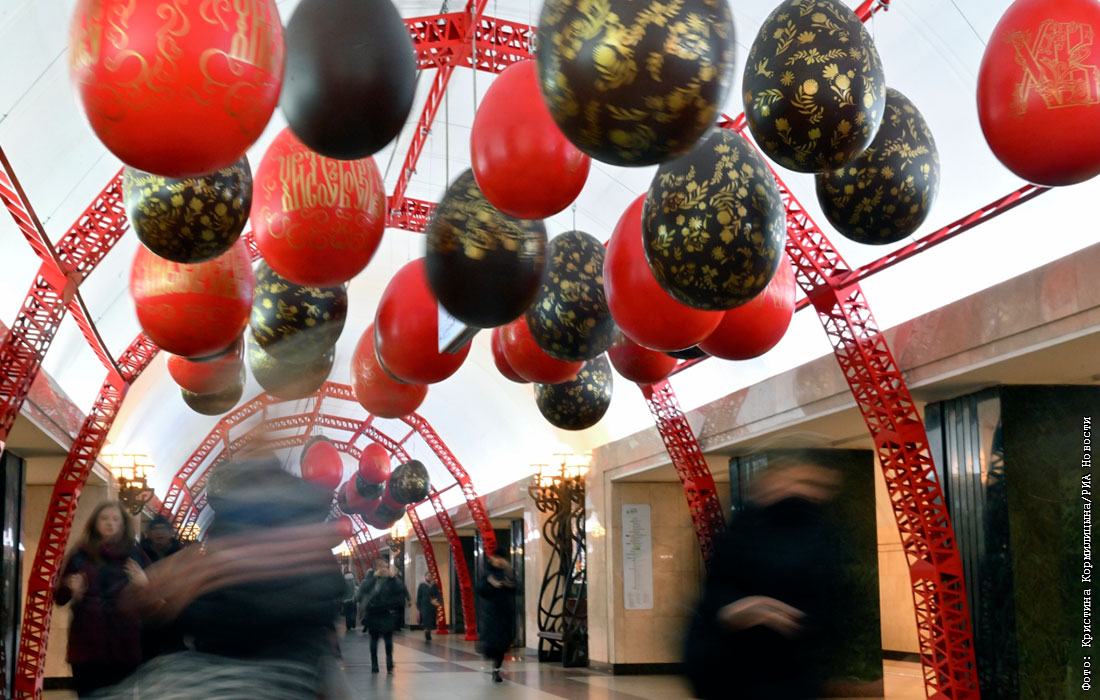 Потолок московской станции метро "Трубная" оформили декоративными яйцами к Пасхе