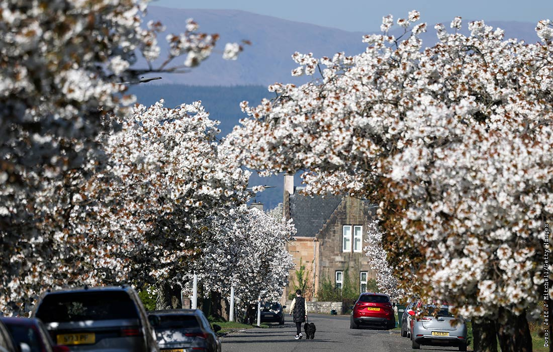 Цветение вишни в Хеленсбурге, Шотландия
