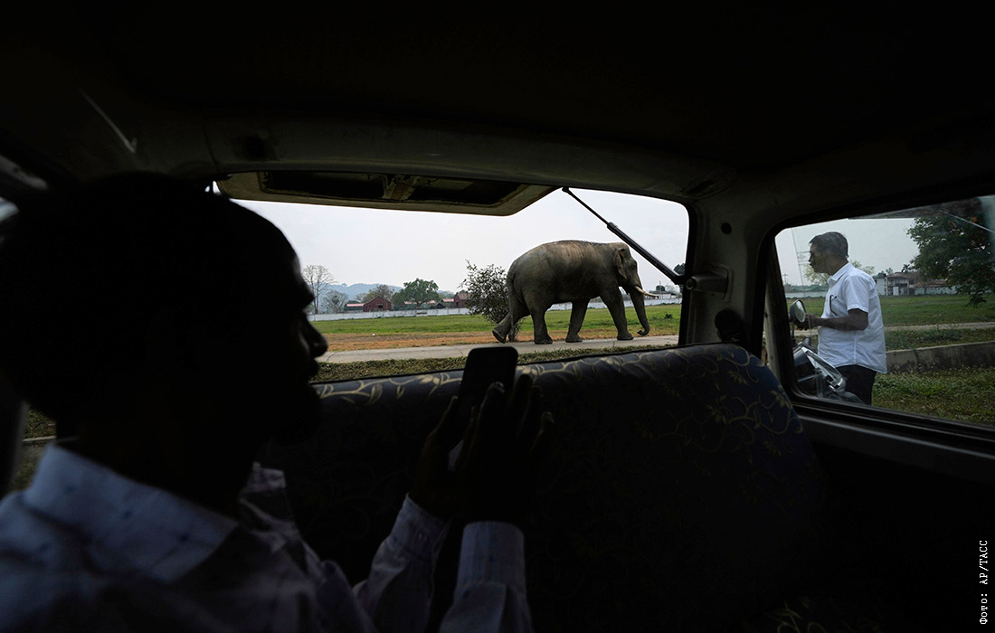 Турист фотографирует слона около заповедника дикой природы Амчанг в Индии
