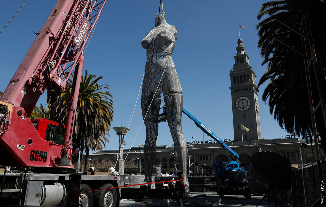 Установка скульптуры R-Evolution художника Марко Кокрейна в Сан-Франциско
