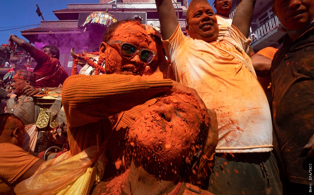 Фестиваль Синдур Джатра в честь непальского Нового года в Катманду