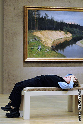 У работы художника Исаака Левитана "Лесистый берег. Сумерки" на выставке "Исаак Левитан. К 150-летию со дня рождения" в Третьяковской галерее