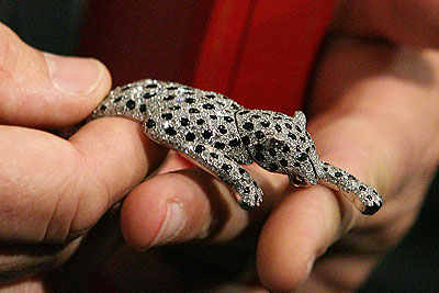 Браслет "Пантера" (1952) из оникса и бриллиантов от Cartier, принадлежавший герцогине Виндзорской, представлен на выставке лотов аукционного дома Sotheby's в Государственном историческом музее