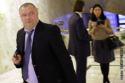 Генеральный директор компании "Интеррос", председатель Совета директоров ОАО «ГМК "Норильский никель" Андрей Клишас перед началом внеочередного собрания ОАО "ГМК "Норильский Никель".