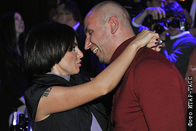 Участница группы "t.A.T.u" Юлия Волкова со спутником перед церемонией вручения наград "ТОП 10 SEXY", учрежденной Радио Monte Carlo в клубе "PlayHouse"