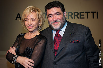 Модельер Альберта Ферретти и президент компании "Боско ди Чильеджи" Михаил Куснирович на открытии бутика Alberta Ferretti в ГУМе