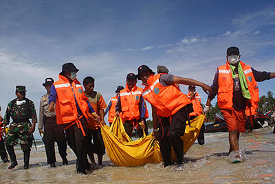 Число жертв цунами в Индонезии превысило 400 человек, еще более 300 человек продолжают числиться пропавшими без вести. Такие данные привел в пятницу представитель спасательных служб Агус Прайитно. Проведение спасательной операции осложнено тем, что пострадавшие рыбацкие деревеньки находятся на отдаленных островах. Лагеря для пострадавших на настоящий момент приняли 13 тыс. человек