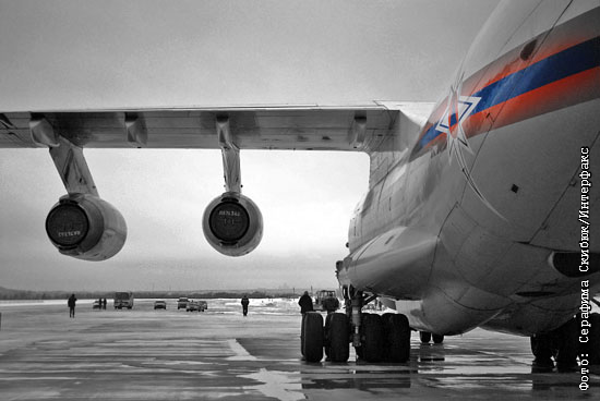 Самолет с российскими спасателями ИЛ-76 на аэродроме Раменское
