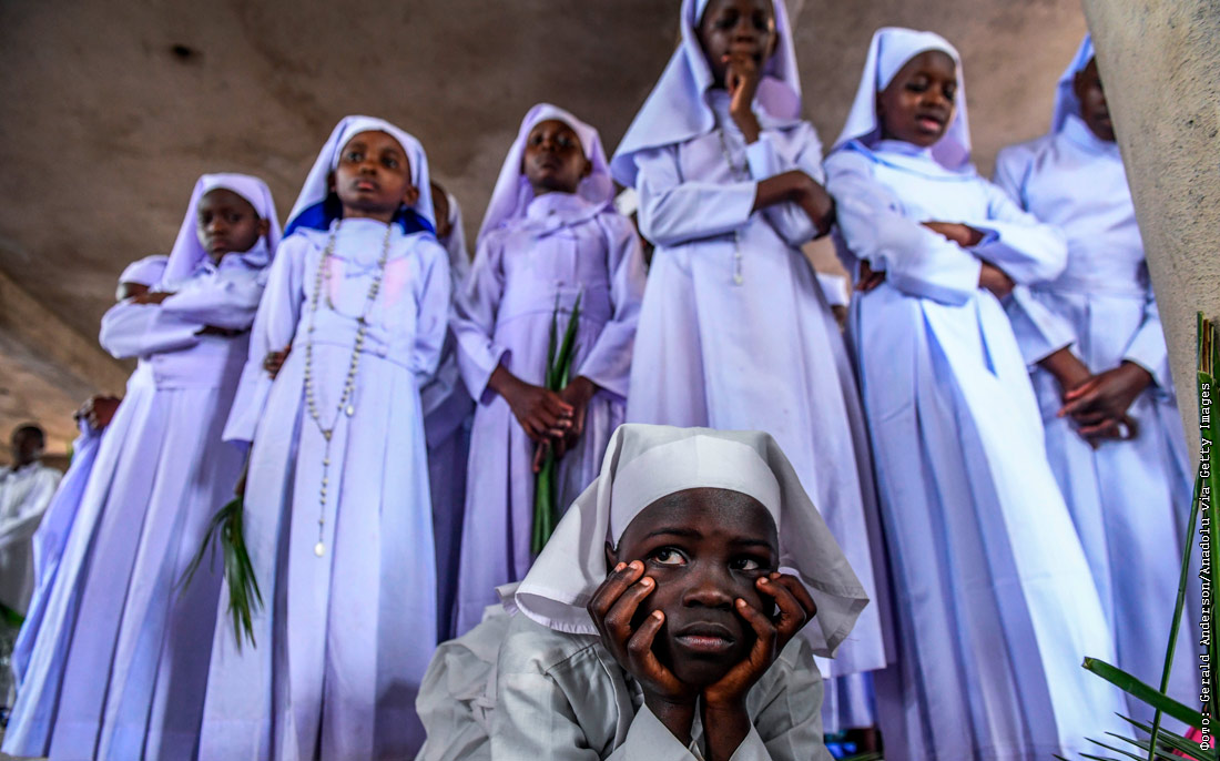 Члены церкви Легио Мария в трущобах Кибера в пригороде столицы Кении