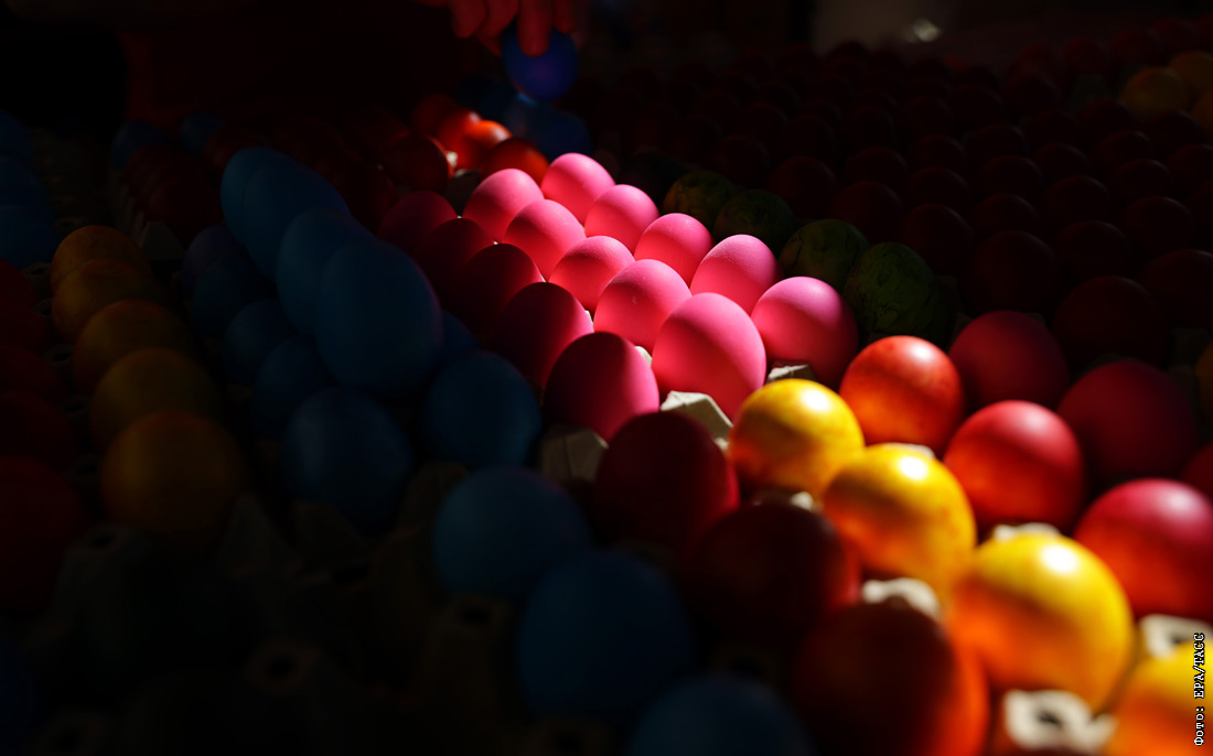 Продажа пасхальных яиц на рынке в Белграде