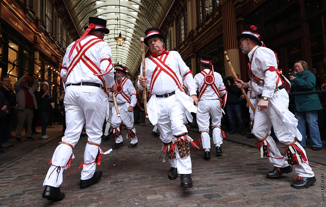 Исполнение танца Моррис в День святого Георгия в Лондоне