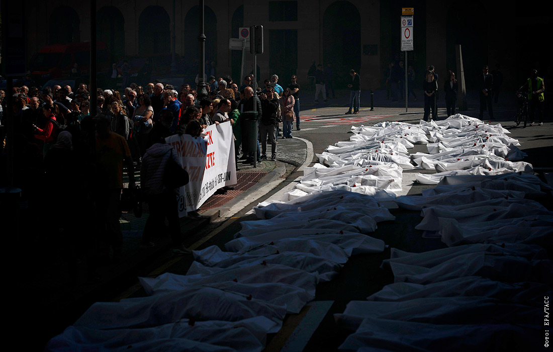 Акция протеста в испанской Памплоне в Международный день памяти погибших и травмированных на рабочем месте