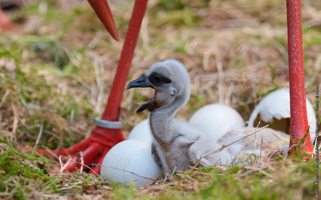 Аистенок в гнезде в парке дикой природы Экхольт, Германия