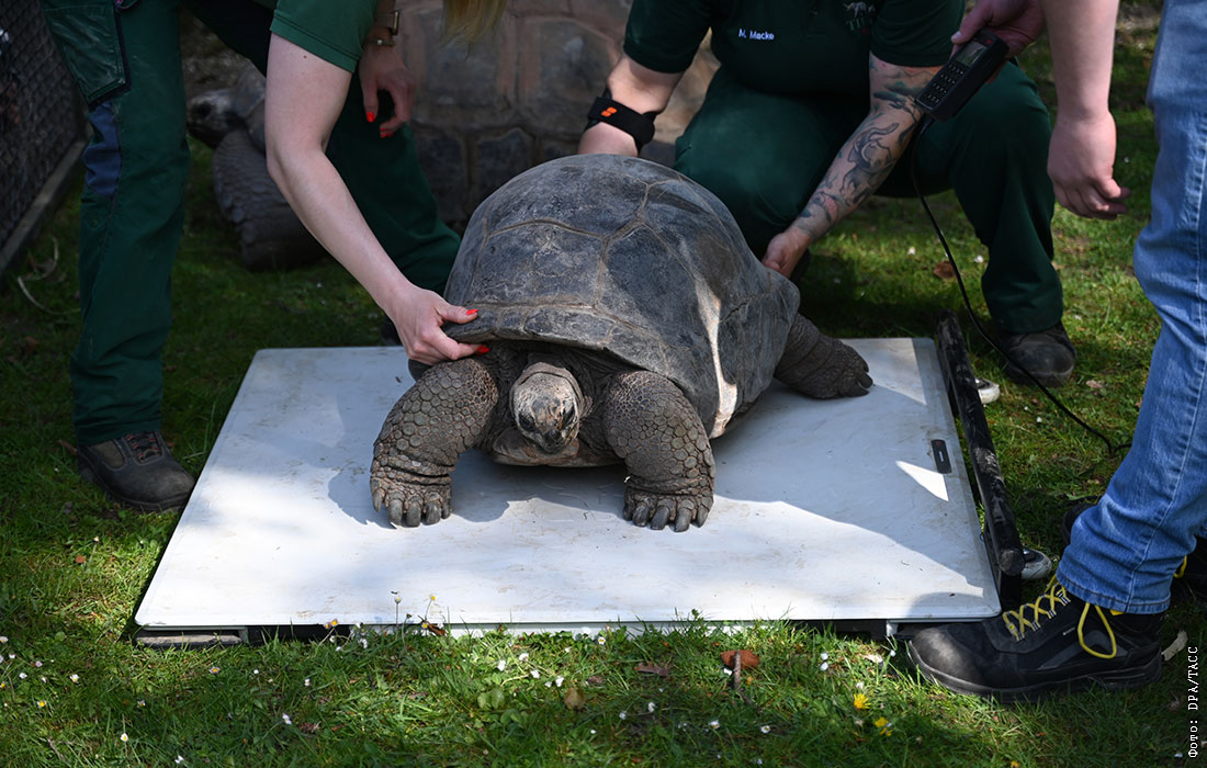 Медицинский осмотр гигантских черепах в гамбургском зоопарке Хагенбека