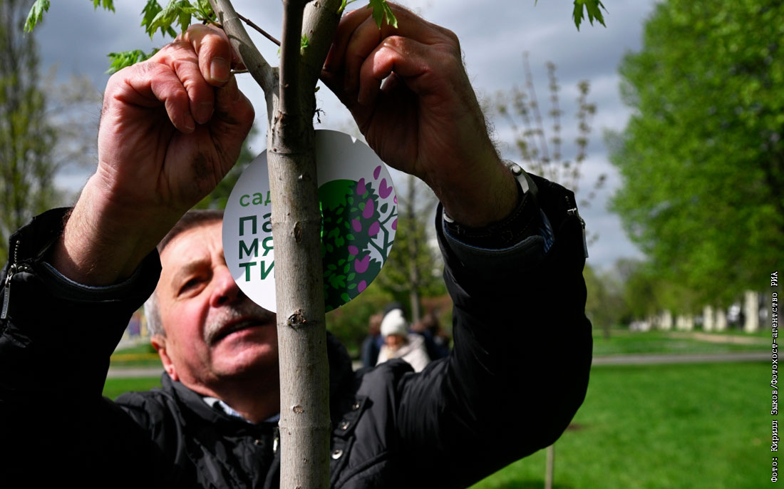 Космонавт, герой России Александр Лазуткин принимает участие в посадке деревьев на международной акции "Сад памяти" в Москве