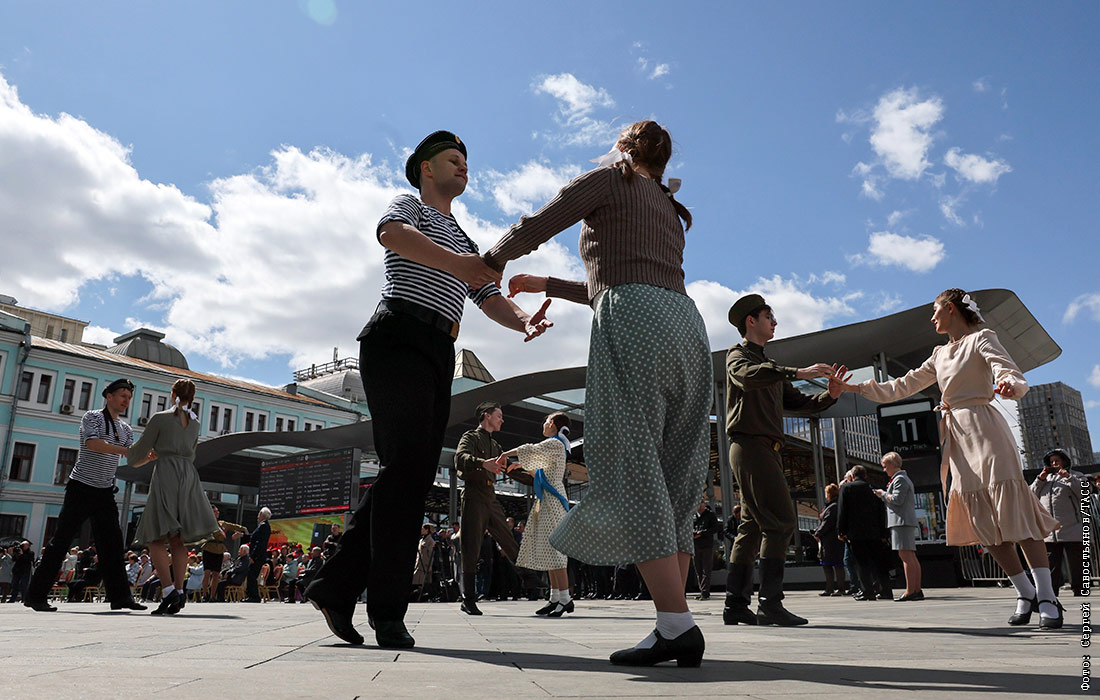 Акция "Вальс Победы" на Белорусском вокзале в Москве