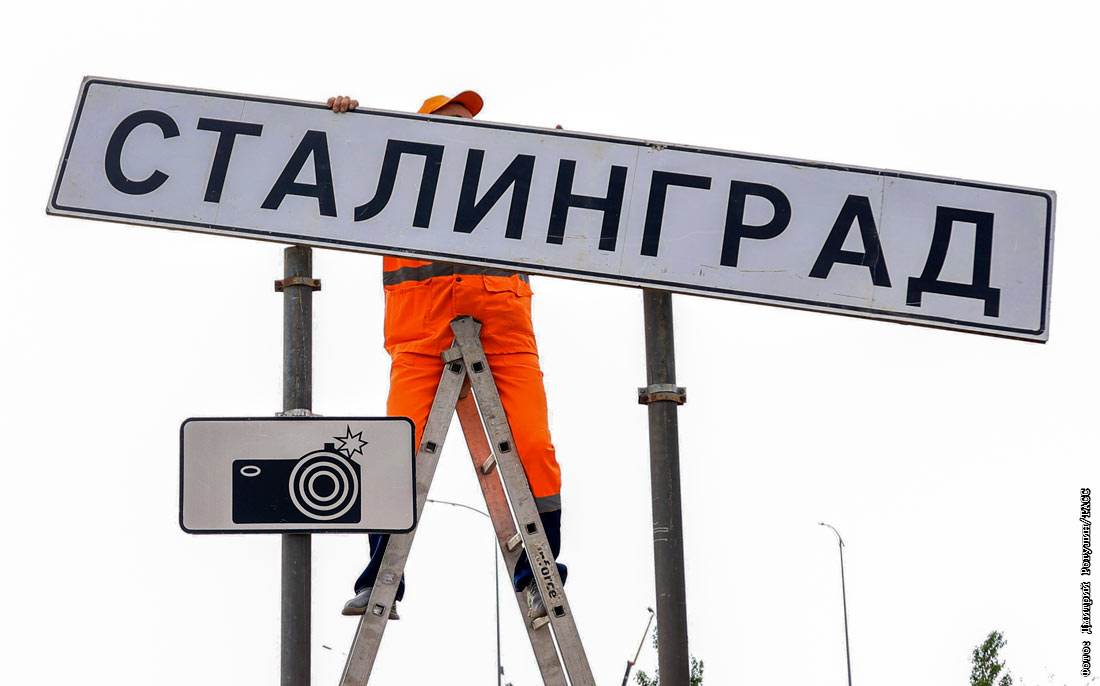 Накануне празднования Дня Победы на всех основных въездах в город дорожные знаки "Волгоград" временно заменяются на знаки "Сталинград"