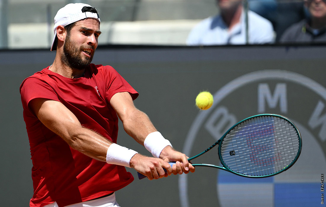 Российский теннисист Карен Хачанов в матче против Карлоса Алькараса из Испании