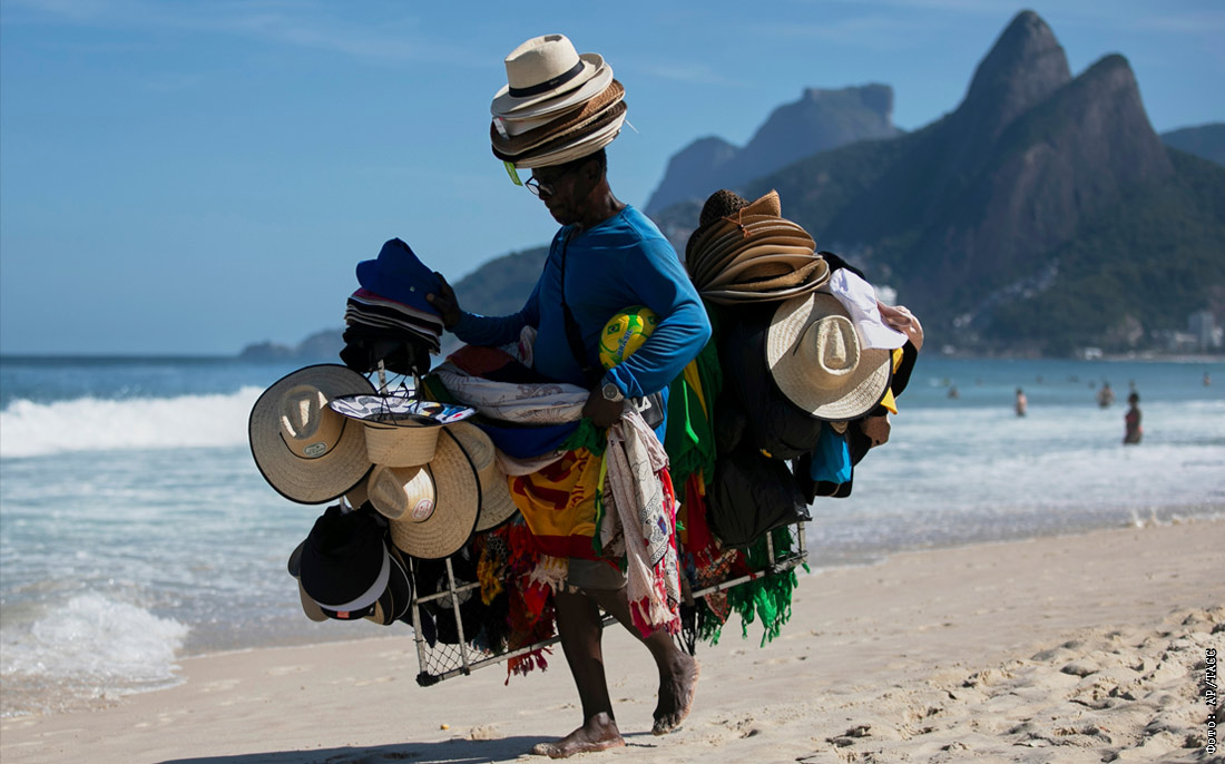 Продавец на пляже Ипанема в Рио-де-Жанейро