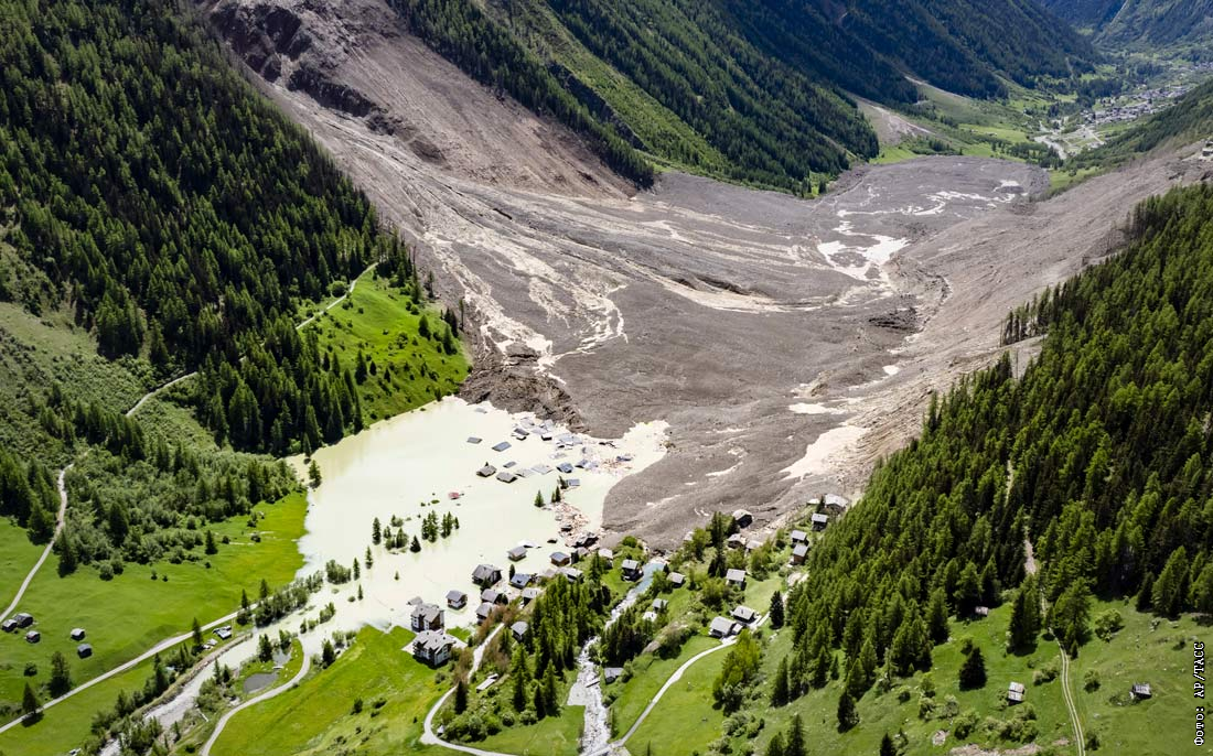 Последствия схода ледника Берч на юге Швейцарии