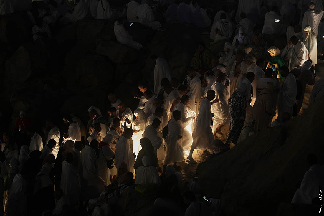 Восхождение на священную гору Арафат в Саудовской Аравии во время хаджа
