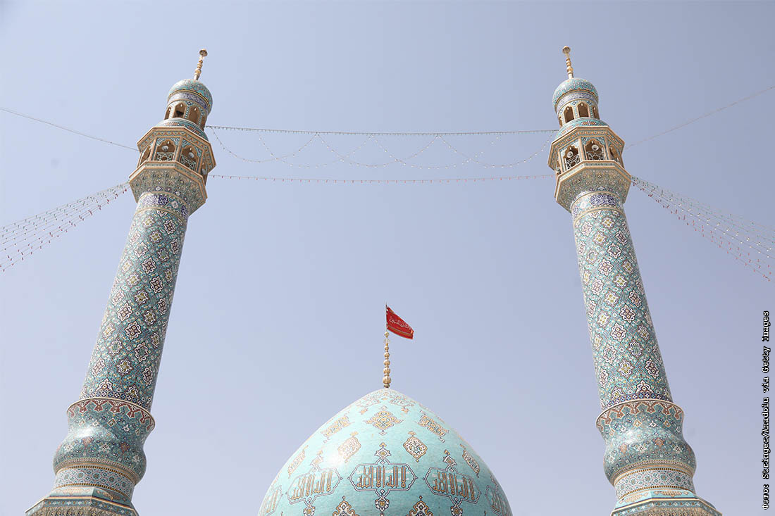 Красный «флаг мести», поднят на куполе мечети Джамакаран в городе Ком в Иране после израильской атаки на страну