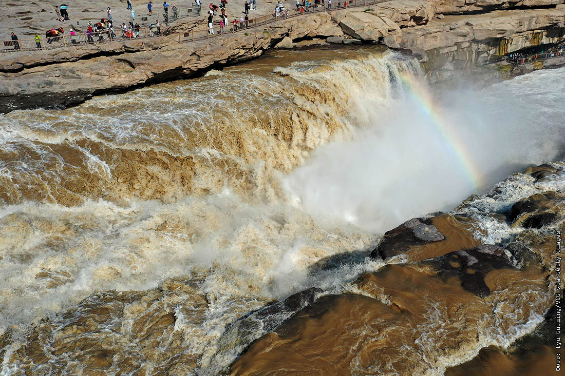 Радуга над водопадом на Желтой реке в китайской провинции Шаньси